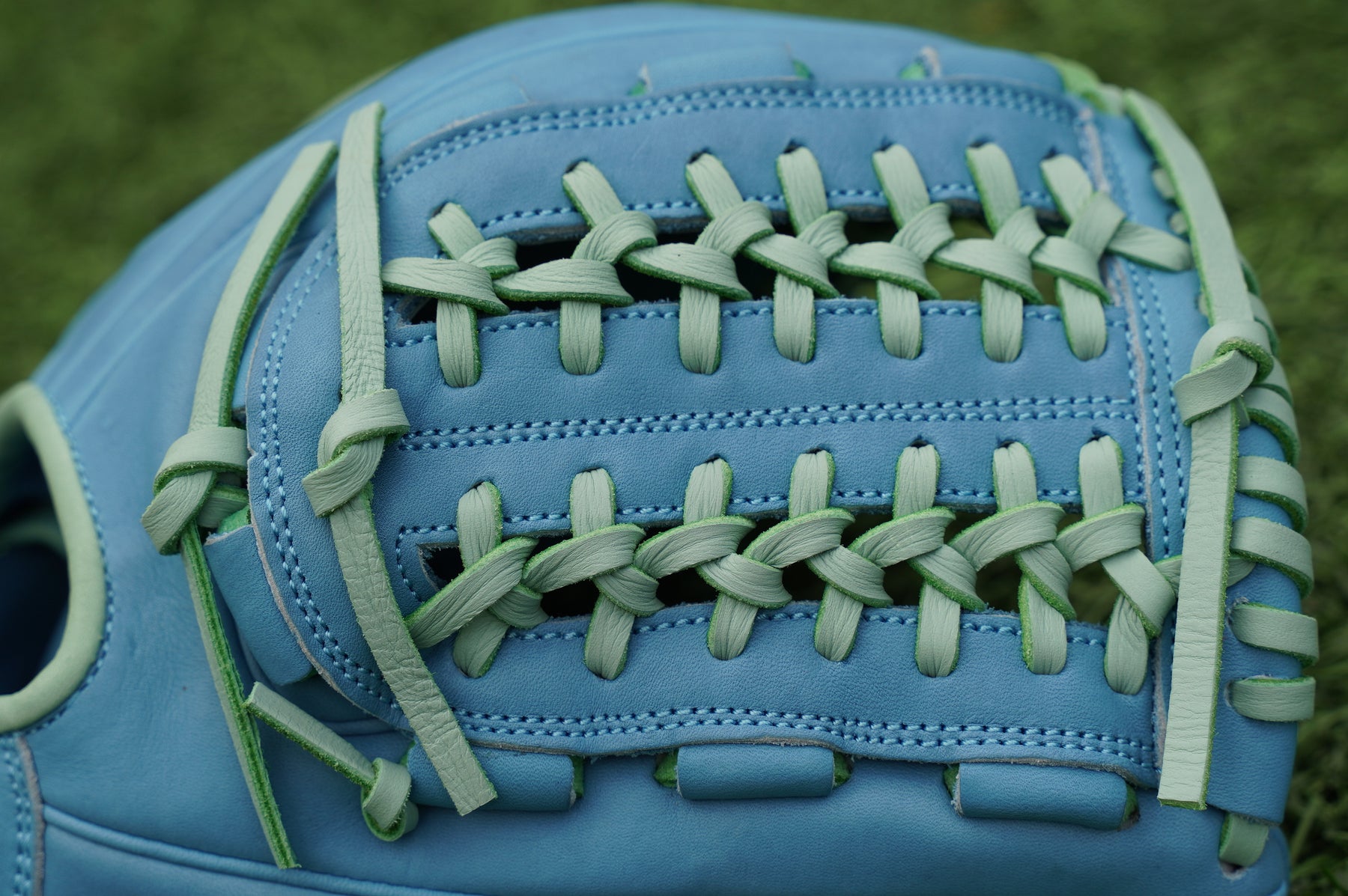 Command attention with the 12" Grace Limited 25 H-Web Baseball Glove, a perfect fusion of color and performance. Featuring a vibrant baby shell paired with mint laces and embroidery, this glove delivers a fresh, modern look that turns heads. Crafted from pro-grade Kip leather, it offers a soft, premium feel with the durability and structure serious players demand. Dual-welting adds long-lasting shape retention, while the H-Web design provides the versatility ideal for infielders and pitchers alike.